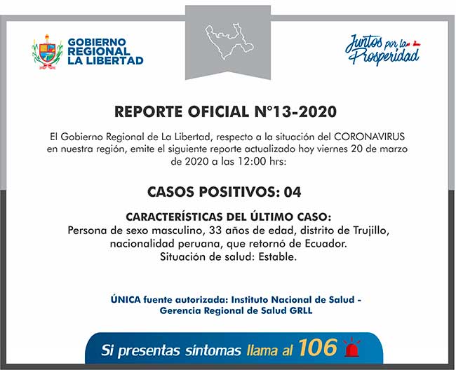 Un cuarto caso de coronavirus se reporta en la región La Libertad . Así informó mediante un reporte la Gerencia Regional de Salud (Geresa).