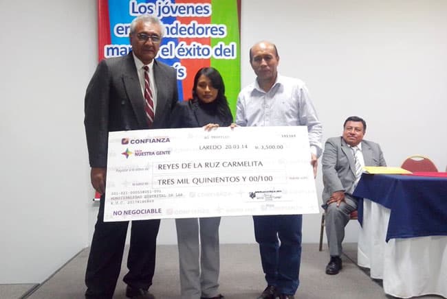La Municipalidad de Laredo participó con la convocatoria del concurso y premios a 7 emprendedores. De los 7 jóvenes emprendedores laredinos, premiados con fondos de la Municipalidad de Laredo, 4 fueron por Idea o Semilla de Negocio y 3 por Mejora de Negocio. Por Semilla de Negocios recibieron Reyes de la Cruz Carmelita 3 mil 500 nuevos soles; Zegarra Jara John 3 mil; Bautista Rodríguez Enzo 2 mil; Gamboa Bautista Junior 2 mil.