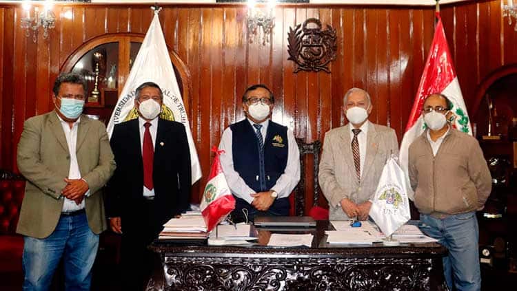 En la reunión también participaron el Dr. Juan Villacorta Vásquez, Vice Rector Académico UNT; Ing. Víctor Vásquez Villalobos, Decano de la Facultad de Ciencias Agropecuarias y el Alto Comisionado de la UNT, Dr. Miguel Rodríguez Albán.