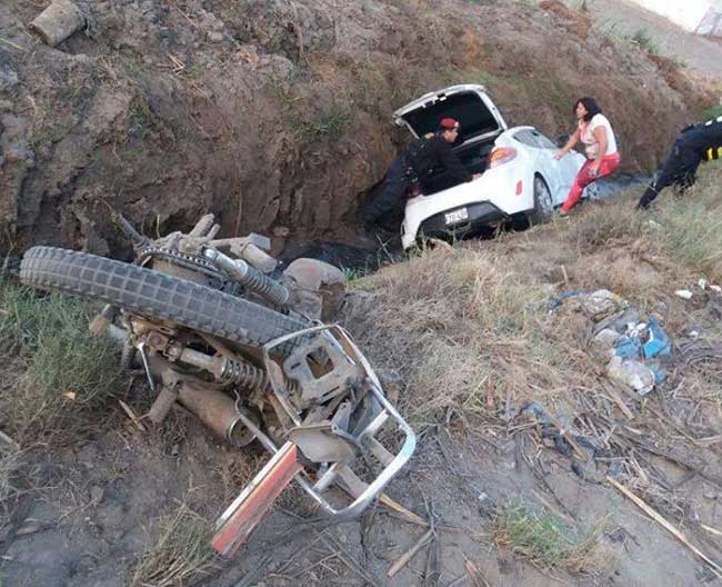 El auto colisionó con una moto lineal y el saldo fue un muerto y un herido. El occiso fue identificado como Gilmer Castillo Caballero (49) y el herido Jorge Luis Luis Saldaña Sánchez.
