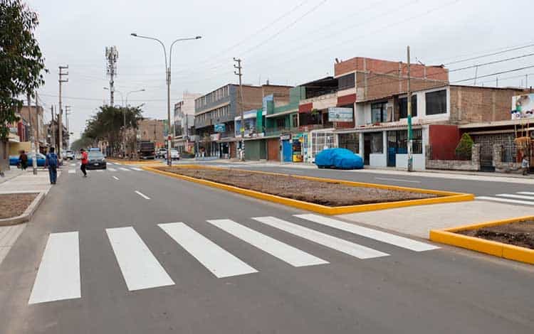 Hoy martes quedó reabierto al tránsito vehicular y uso de la comunidad la mejorada avenida César Vallejo, en el tramo entre las avenidas Eguren y Villarreal, donde se construyeron aproximadamente 2 km de nueva vía con asfalto en caliente de tres pulgadas de espesor, 5,660.92 m2 de veredas, 2,914.56 ml de sardineles y 2,478.05 m2 áreas de estacionamiento.