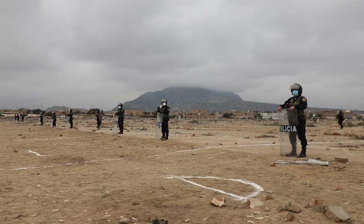 Los invasores llegaron al lugar con calaminas, palos, esteras, bolsas de cal con fines de demarcar y delimitar 45 hectáreas de la zona intangible que intentaron ocupar al margen de la ley. Fue necesaria la presencia de más de 60 efectivos de la Comisaria de Huanchaco y la Unidad de Servicios Especiales, al mando del capitán Ezequiel Peña Miranda para retirarlos.