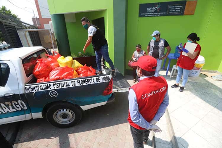 En el marco del Control Integral de Emergencia Sanitaria COVID-19, la Contraloría General detectó riesgos en el almacenamiento y entrega de productos para la canasta básica familiar en la Municipalidad Distrital de Florencia de Mora, provincia de Trujillo – La Libertad, al evidenciar que los alimentos no se encuentran almacenados en condiciones adecuadas y tienen contacto directo con el suelo.