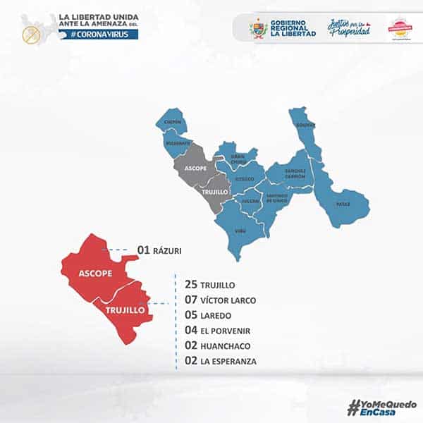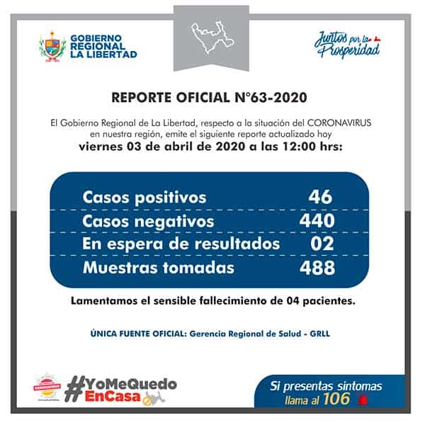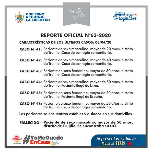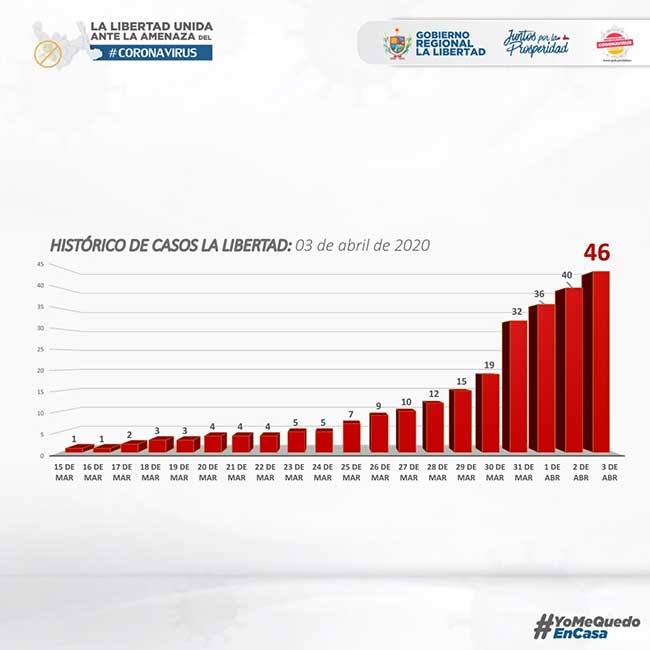 El Gobierno Regional de La Libertad, reportó 46 casos positivos de COVID-19 en la región liberteña.