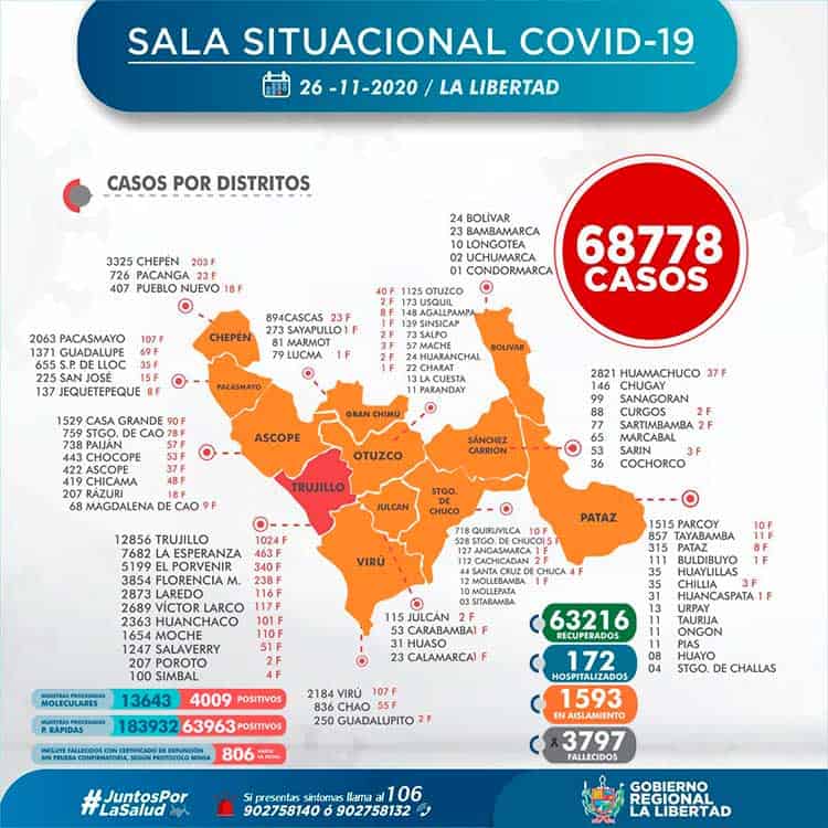 Los fallecidos a causa del coronavirus en La Libertad, ascienden a 3797, registrándose 5 nuevos decesos en las últimas 24 horas.