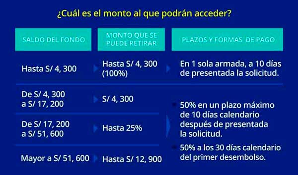 Considerando el saldo acumulado de tu fondo, podrá retirar desde S/4.300 (1 UIT), hasta el 25% del total de tu fondo, con un tope máximo de S/12.900 (3 UIT), de acuerdo con la Ley Nº 31017.