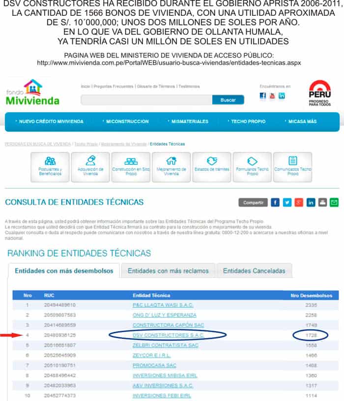 GANANCIAS MILLONARIAS CON EL APRA: En el gobierno aprista del 2006-2011, sólo en los programas sociales de vivienda, ha ganado casi diez millones de soles, un promedio de casi dos millones de soles por año; es decir, se hizo millonario con el APRA y todavía tiene la cara de “sentirse traicionado”; indicó sorprendido el abogado Calderón.