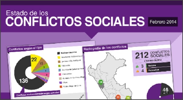 La Defensoría del Pueblo presentó hoy el Reporte de Conflictos Sociales N° 120, correspondiente al mes de febrero de 2014, el cual da cuenta –entre otros aspectos- que durante ese período se registraron 212 conflictos sociales, uno menos en relación al mes anterior.
