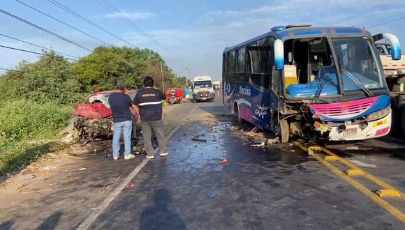 Al parecer el auto que iba de norte a sur habría invadido el carril contrario y colisionó contra el microbús. Dos ocupantes del auto de placa T4T-358 perdieron la vida en el acto. Los cuerpos de las víctimas quedaron atrapados entre los fierros retorcidos de la unidad vehicular.
