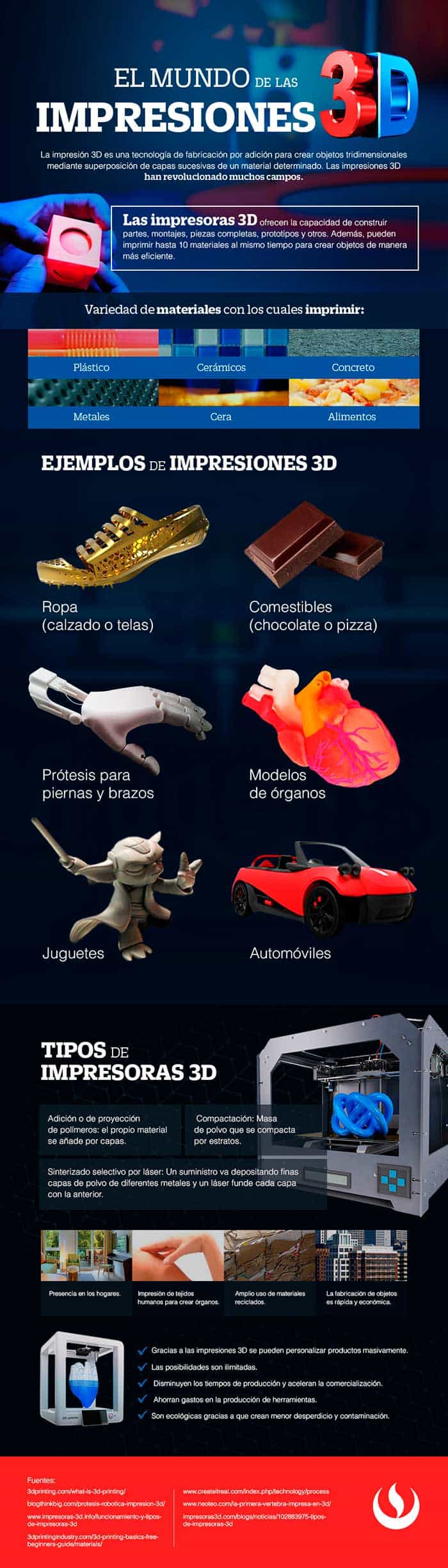 Las impresiones 3D son un beneficio para las personas que sigue evolucionando, nos ayudan a innovar ya que las posibilidades son ilimitadas. Ayudan a disminuir los tiempos de producción y a acelerar la comercialización, ahorran gastos en producción de herramientas. Además, gracias a estas se pueden personalizar productos masivamente de acuerdo a los diferentes individuos.