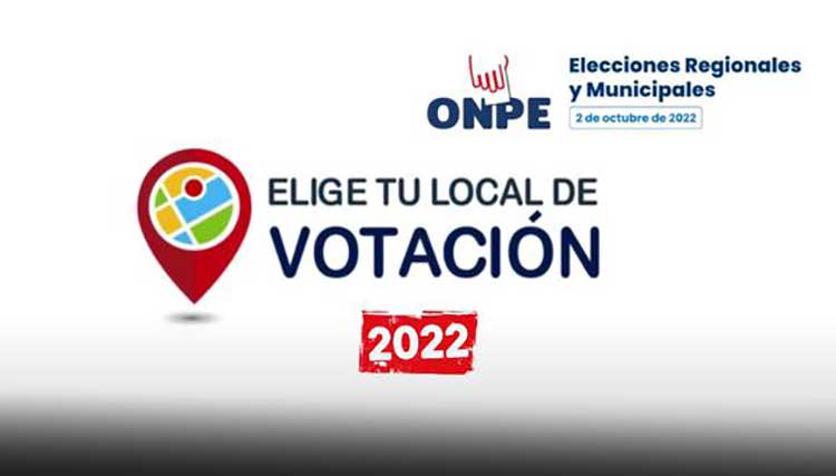 La Oficina Nacional de Procesos Electorales (ONPE) puso a disposición de la ciudadanía la plataforma «Elige tu local de votación», en el marco de las Elecciones Regionales y Municipales 2022, del próximo 2 de octubre.