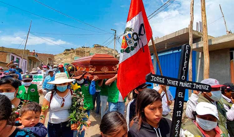 Este domingo 6 de diciembre en horas de la tarde, en medio de consignas que exigían se dé con los responsables de su muerte ocurrida durante el paro agrario en Chao, provincia de Virú, en la región La Libertad, fue enterrado el joven Jorge Muñoz Jiménez (19). Tanto los familiares como sus amigos y compañeros coincidieron en pedir al Ministerio Público que se ahonden las investigaciones para sancionar a los culpables de su fallecimiento.