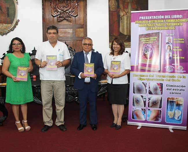 “Este libro se desarrolló en base a la experiencia del Dr. Lecca Briones, quien, con más de 30 años trabajando en diversas zonas del país, realizó formulaciones magistrales, que son la esencia del farmacéutico, para tratar este problema de la piel en el codo, la rodilla o en cualquier parte del cuerpo de los pacientes”, expresó la Dra. Carmen Marín Tello, docente investigadora de la Facultad de Farmacia y Bioquímica de la UNT.