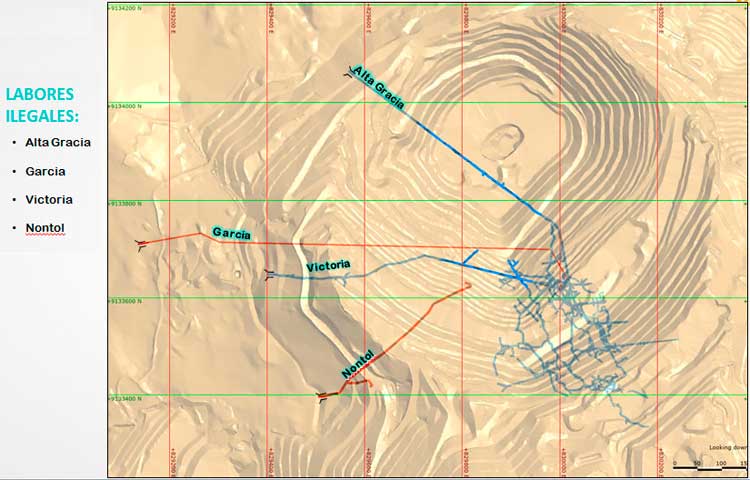 “Mediante estos gráficos podrán comprobar que la minería ilegal ha utilizado dinamita para perforar el subsuelo en forma indiscriminada y muy cerca de los caseríos, a diferencia de la concesión minera. El robo sistemático de mineral permite, en ocasiones, solventar actividades que pretenden desviar la atención, especialmente cuando el Gobierno Regional de La Libertad ha suspendido varias labores de minería ilegal”, sostuvo.