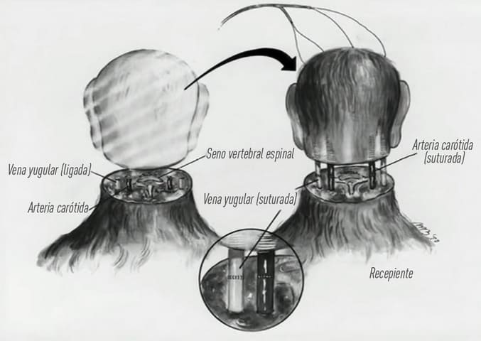 La técnica consiste en unir la parte de la espina dorsal de la cabeza separada con la parte de la espina dorsal que queda en el cuerpo receptor, usando para ello una sustancia química. Después, los cirujanos habrán de suturar los músculos y conductos sanguíneos.
