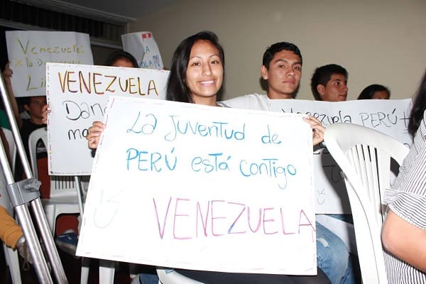 Paulina Facchin, coordinadora del Comando Simón Bolívar en Perú agradeció el gesto de la juventud peruana por medio de este pronunciamiento. En este encuentro, Franco Arce, Presidente de la Asociación de Jóvenes Estudiantes del Perú, hizo un llamado a la juventud del Perú a sensibilizarse con los hermanos venezolanos tomando en cuenta que las personas asesinadas en dicho país son en su totalidad jóvenes estudiantes.
