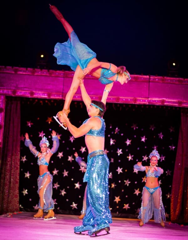 El elenco conformado por patinadores profesionales de Rusia, Ucrania, Argentina y México, quienes trabajarán todos los números circenses sobre el frio hielo realizando piruetas, giro, los cuales van acompañados de un impecable diseño de luces de última generación y un inmejorable sonido.