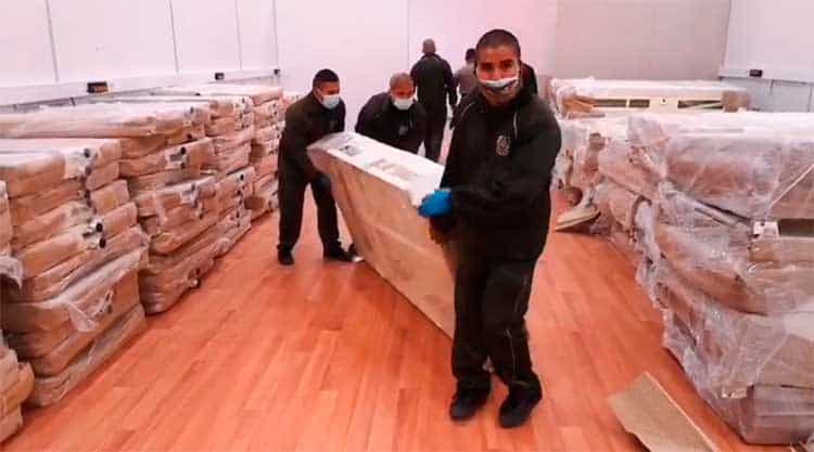 Un total de 100 camas llegaron al Centro Temporal de Hospitalización, en el colegio militar Ramón Castilla, en el distrito de Huanchaco, en donde se atenderá a pacientes con Covid-19.