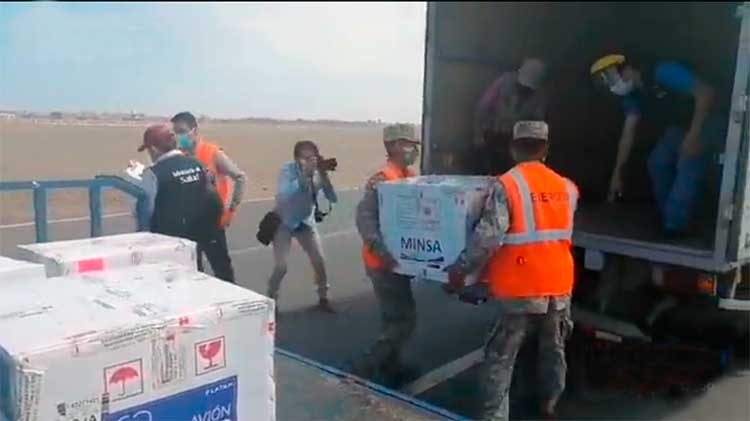 Esta mañana llegó al Aeropuerto de Trujillo Carlos Martínez de Pinillos 17,550 vacunas Pfizer, que fueron almacenadas en la cadena de frío proporcionada por UPAO.