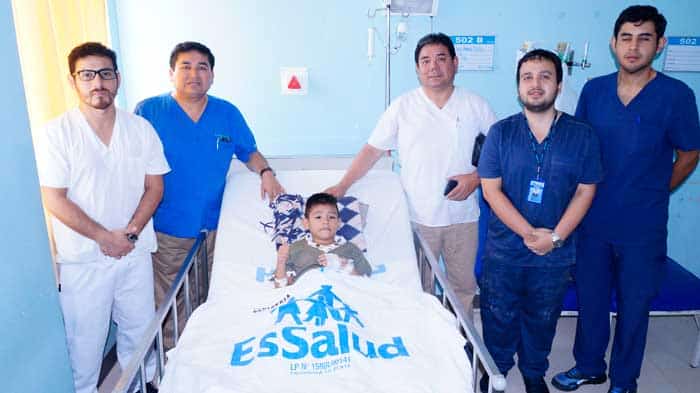 Gracias a un moderno procedimiento quirúrgico, médicos especialistas del Servicio de Urología del Hospital de Alta Complejidad Virgen de la Puerta de EsSalud La Libertad lograron salvar a niño de 6 años de edad, quien sufría de cálculos en el uréter izquierdo, logrando retirarlos por completo de su anatomía, fue una nueva proeza médica al realizar una compleja operación, informó el doctor José Luis Carranza Castillo, Gerente de esta institución.