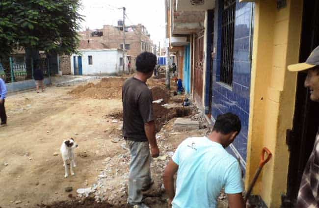 La Municipalidad Provincial de Trujillo está apoyando con materiales de construcción la red de alcantarillado de las cuadras 1 y 2 del jirón Independencia, del distrito de Laredo, y de veredas del sector, obras que se están ejecutando mediante el sistema de participación vecinal.