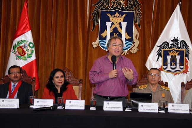 Fue durante la III Mesa de Diálogo por la Seguridad Ciudadana en Trujillo, presidida por la alcaldesa provincial de Trujillo, Gloria Montenegro Figueroa, en la que estuvo acompañado por el director general de la PNP, Jorge Flórez Goicochea; el secretario técnico del Comité Nacional de Seguridad Ciudadana, Gral. PNP, Roberto Millar Amiel; el jefe de la Región Norte, Gral. PNP César Gentile Vargas; el presidente de la Corte Superior de Justicia de La Libertad, Augusto Ruidiaz Farfán; y el presidente de la Junta Superior de Fiscales del Ministerio Público de La Libertad, Luis Cortez Albán.