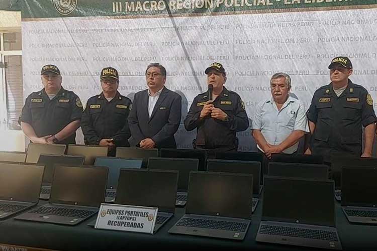 Agentes de la Policía Nacional del Perú (PNP) recuperaron 20 laptops que fueron robadas el pasado 30 de abril de la institución educativa Ramiro Ñique, ubicada en el distrito de Moche, provincia de Trujillo, región La Libertad, y con ellas suman 58 los equipos recuperados de un total de 60.