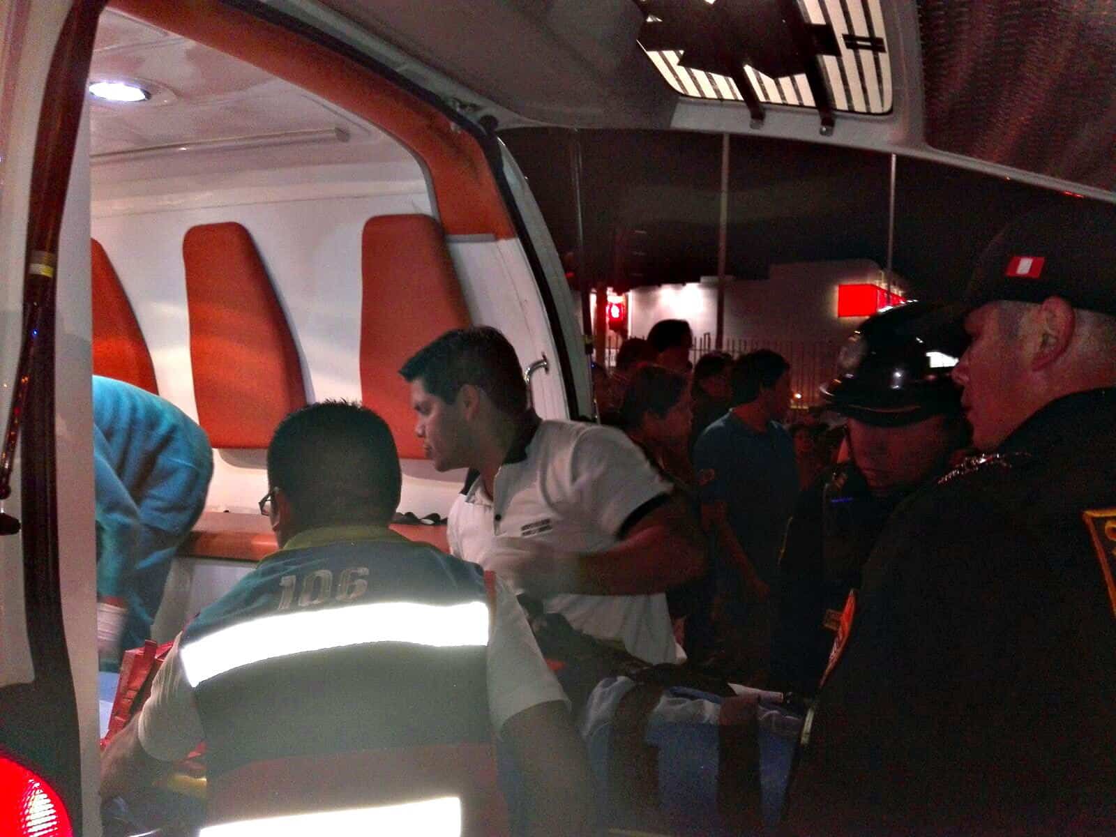 El reporte de los agentes de Seguridad Ciudadana de Trujillo añade que a los pocos minutos han llegado los socorristas, quienes, luego de examinar al herido, lo han colocado en una camilla y lo han trasladado de urgencia, en una ambulancia, a la Clínica Peruano Americana, para su atención.