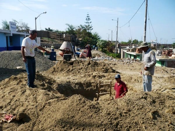 Esta obra de alcantarillado beneficiará a 75 familias y para eso la Municipalidad de Trujillo, a través de la Subgerencia de Participación Vecinal, entregó la cantidad de 53 tubos, 24 metros cúbicos de arena gruesa, 12 metros cúbicos de gravilla y 18 varillas de fierro de ½”.