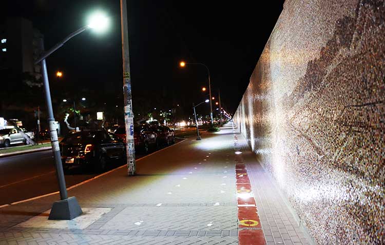 La Municipalidad Provincial de Trujillo (MPT) instaló alumbrado LED en los exteriores de la Universidad Nacional de Trujillo (UNT) embelleciendo el mural mosaico más grande de Latinoamérica, considerado como una obra artística que refleja la evolución del hombre en motivos clásicos y, que, actualmente forma parte del patrimonio cultural trujillano.