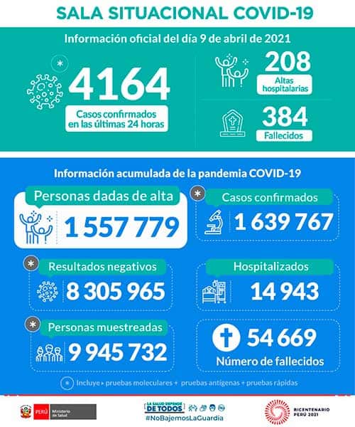 De acuerdo con el registro de la Sala Situacional COVID-19, el 9 de abril de 2021 se registraron 384 fallecidos.