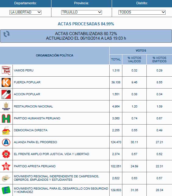 ONPE al 84.99 % : Elidio Espinoza mantiene ventaja de 5133 votos sobre Manuel Llempén
