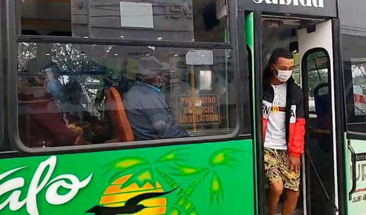Los pasajeros que no portaban el protector facial, tuvieron que descender de los vehículos y los conductores fueron multados según la norma que rige a nivel nacional desde hoy.