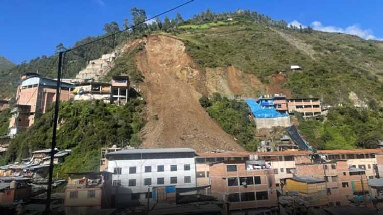 El fenómeno natural se registró esta mañana en la localidad de Retamas, distrito de Parcoy, provincia de Pataz, la tierra terminó tapando los inmuebles de la calle José Olaya.
