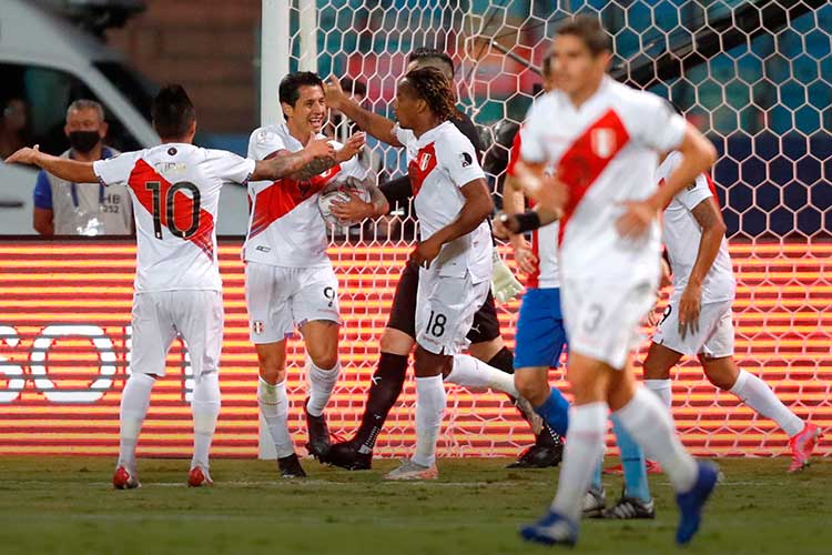 PERÚ (3) (4): Gallese; Corzo, Ramos, Santamaría, Trauco; Tapia, Yotún; Peña, Carrillo, Cueva; Lapadula. DT: Gareca.