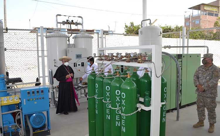 Tras recibir la licencia de funcionamiento por parte del Ministerio de Salud (MINSA), la Planta de Oxígeno obtenida con recursos de la cruzada solidaria Respira Trujillo, que emprendió el Arzobispado y empresarios trujillanos, empezó a operar en las instalaciones de la Universidad Católica de Trujillo