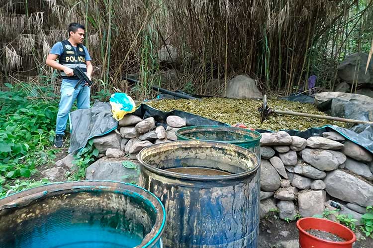 La policía comunicó del operativo al fiscal Shano Cuisano Torres, titular de la Fiscalía Especializada Antidrogas de Trujillo, con quien se coordinó la destrucción e incineración de la poza de maceración.