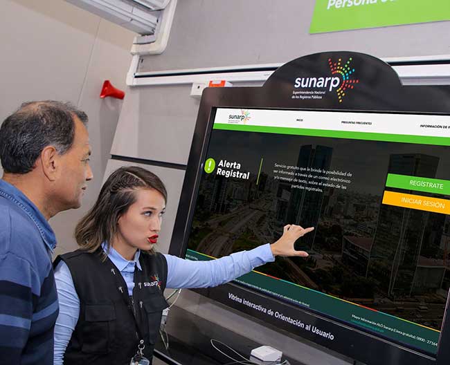 1.- Alerta Registral: Servicio gratuito que tiene como fin que cada vez que alguien presente algún título de inscripción (trámite) sobre una partida afiliada al servicio (ya sea compraventa, donación, rectificación, entre otros actos), el sistema le enviará automáticamente a su correo electrónico, así como a su celular un mensaje, avisándole el número de título y la partida registral que está siendo materia de calificación. Se puede acceder a este servicio a través de la página web de la Sunarp (www.sunarp.gob.pe) y la App Sunarp (solo en el caso de ‘Alerta de Inscripción’) las 24 horas del día, los 7 días de la semana.