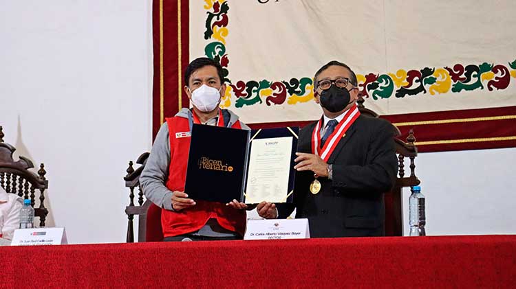 En el Auditorio César Vallejo de la UNT el Ministro recibió la Medalla de Visitante Distinguido en reconocimiento a su importante visita al claustro universitario, destacando su gran aporte a la Educación al haber sido premiado como “Maestro que deja huella”, las Palmas Magisteriales y ser considerado entre los 50 mejores docentes del mundo según The Global Teacher Prize.