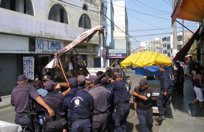 Las principales infracciones en cuanto a Licencias son por ocupar la vía pública, lo que tiene una sanción pecuniaria del 20% de una Unidad Impositiva Tributaria (UIT), es decir 760 nuevos soles, y la incautación de los productos, para lo cual se paga 13 nuevos soles para que los productos sean devueltos.