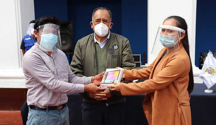 El Rector de la UNT Dr. Carlos Vásquez destacó la gran preocupación y espíritu solidario manifestado por el presidente del Centro de Estudiantes de Ingeniería de Materiales Jean Karlo García Galarreta, quien logró convocar a la empresa privada para obtener las computadoras portátiles (tablets).