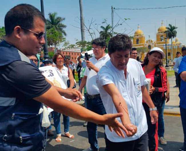 (Trujillo).- Manuel Grados Castillo, trabajador del área de Medicina Legal del Ministerio Público de La Libertad e integrante del comité de lucha del gremio sindical de los servidores, se desangró frente a la Casa de Gobierno como parte de las medidas extremas exigiendo aumento de sueldos, mejores condiciones para laborar e incremento del presupuesto para el sector.