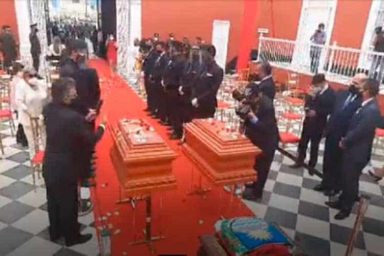 El féretro de José Bernardo de Tagle y Portocarrero y el de su esposa, Mariana Echevarría de Tagle, fueron transportados a bordo de un avión de la Fuerza Aérea del Perú.