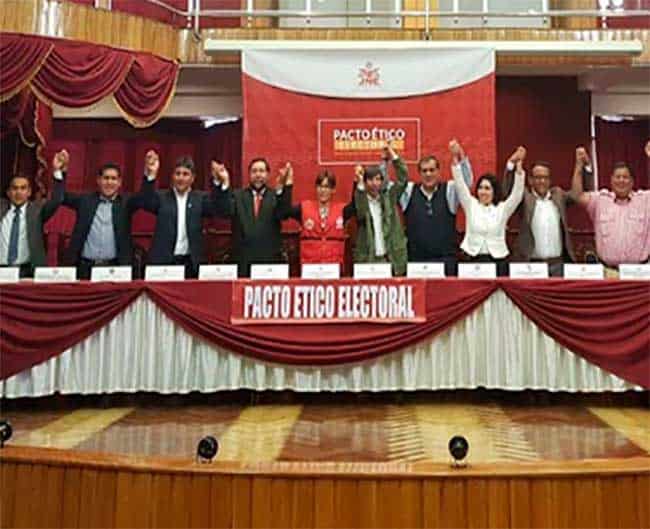 El Pacto Ético Electoral es una iniciativa impulsada en cada proceso electoral por la Dirección Nacional de Educación y Formación Cívica Ciudadana del Jurado Nacional de Elecciones a través del Programa Voto Informado, su objetivo es generar consensos entre las organizaciones políticas en competencia a fin de garantizar a los ciudadanos una campaña libre de insultos y agresiones, fomentando el debate de ideas y programas para lograr un voto responsable informado.