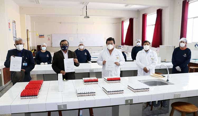 (Trujillo).-. El laboratorio de la Facultad de Farmacia y Bioquímica de la Universidad Nacional de Trujillo, en la persona del decano, Dr. William Sagástegui Guarniz entregó al Rector de este centro de estudios, Dr. Carlos Vásquez Boyer el primer lote de 1,000 dosis del fármaco ivermectina.