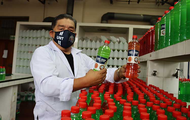 Cabe recordar que a lo largo de toda la pandemia, la UNT preparó 108 000 litros de productos desinfectantes entre jabón líquido, lejía y alcohol en gel; los que fueron distribuidos a hospitales públicos, así como a instituciones que lo requerían, con el objetivo de fortalecer la lucha contra el covid-19.