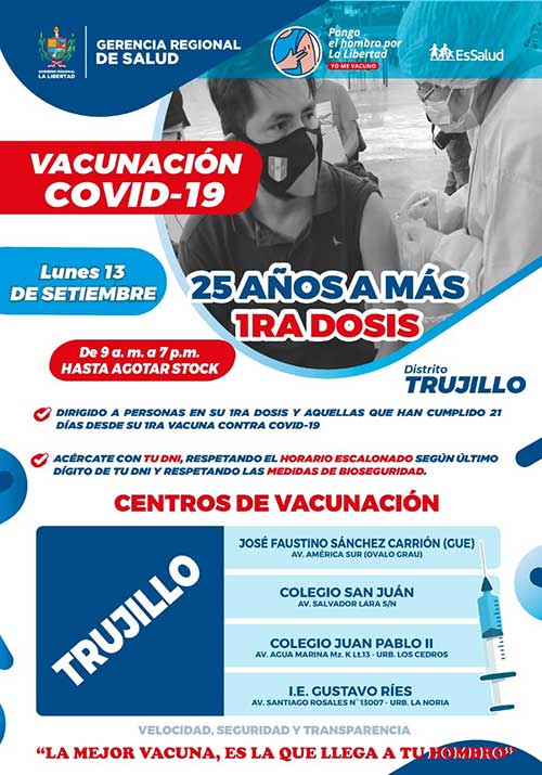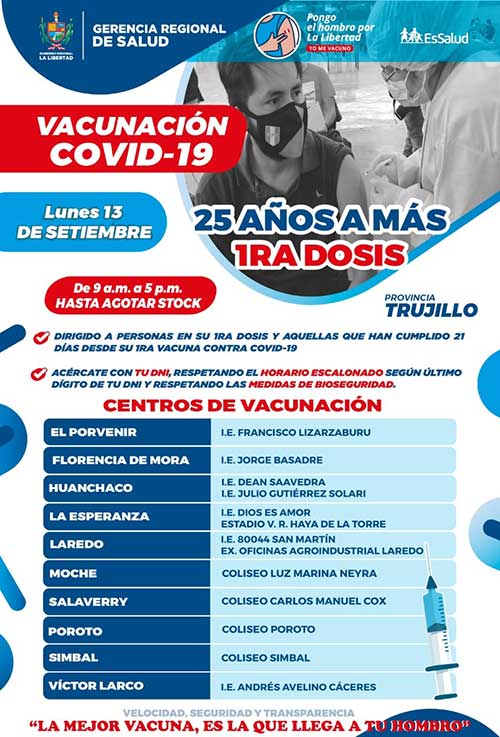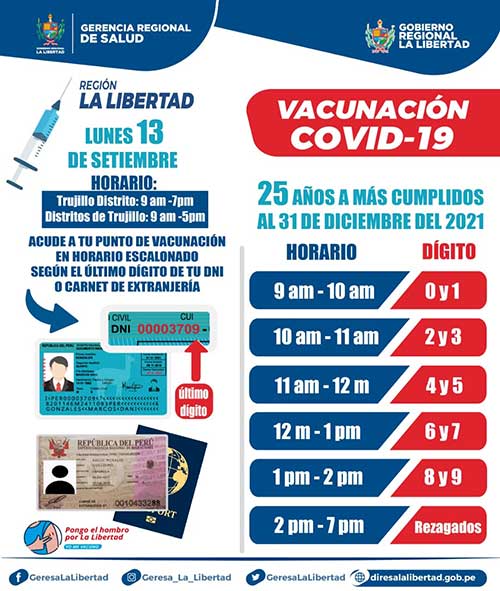 Vacunación Covid-19 para personas mayores de 25 años, o quienes cumplan esta edad hasta el 31 de diciembre del 2021.